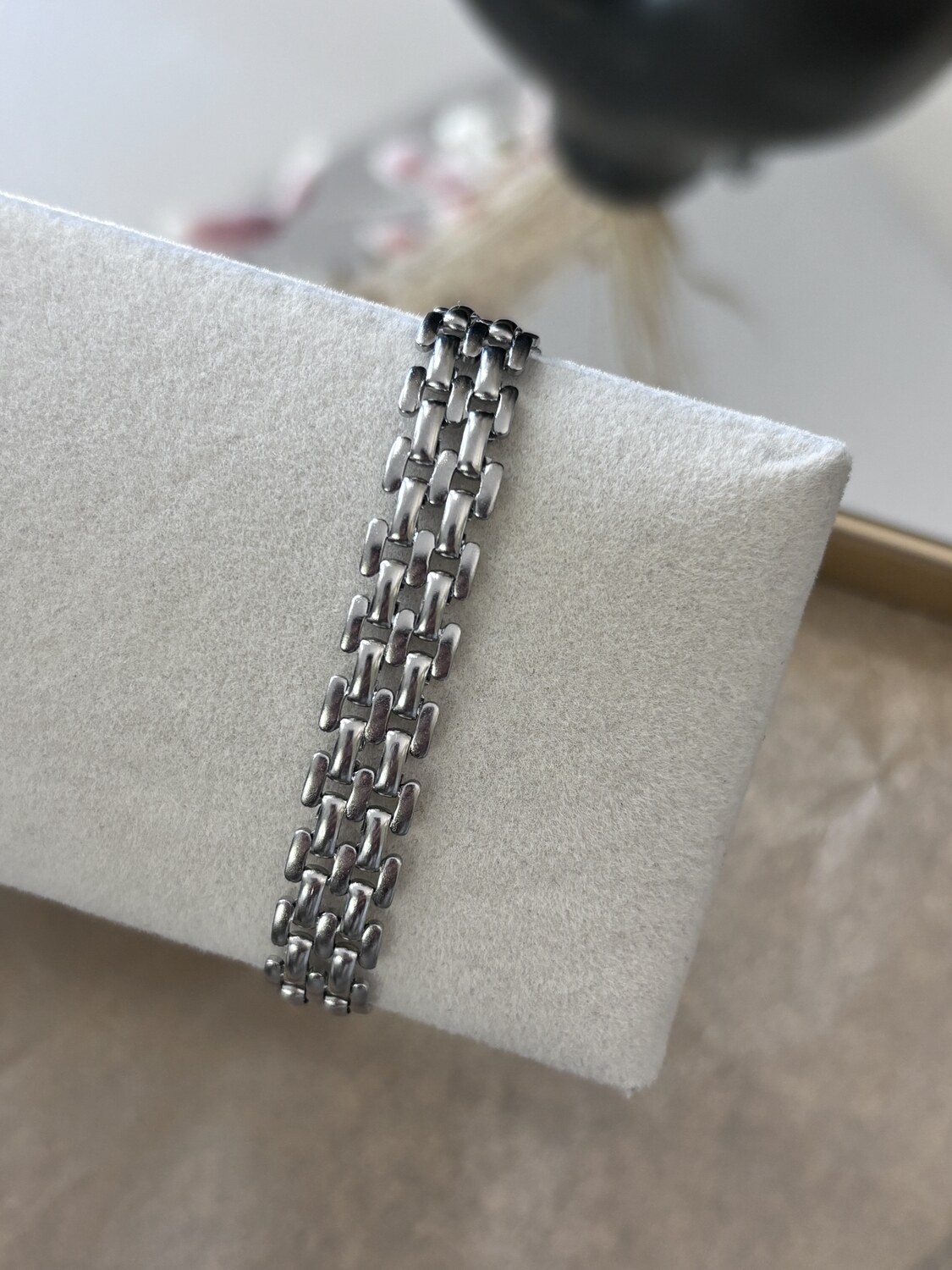 Ατσάλινη αλυσίδα σε χρώμα ασημί. Δεν μαυρίζει και είναι ανθεκτικό στο νερό.
