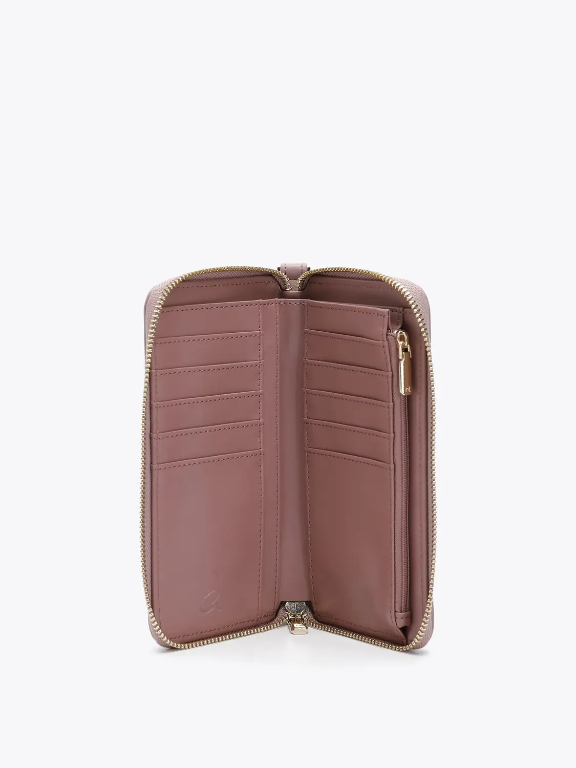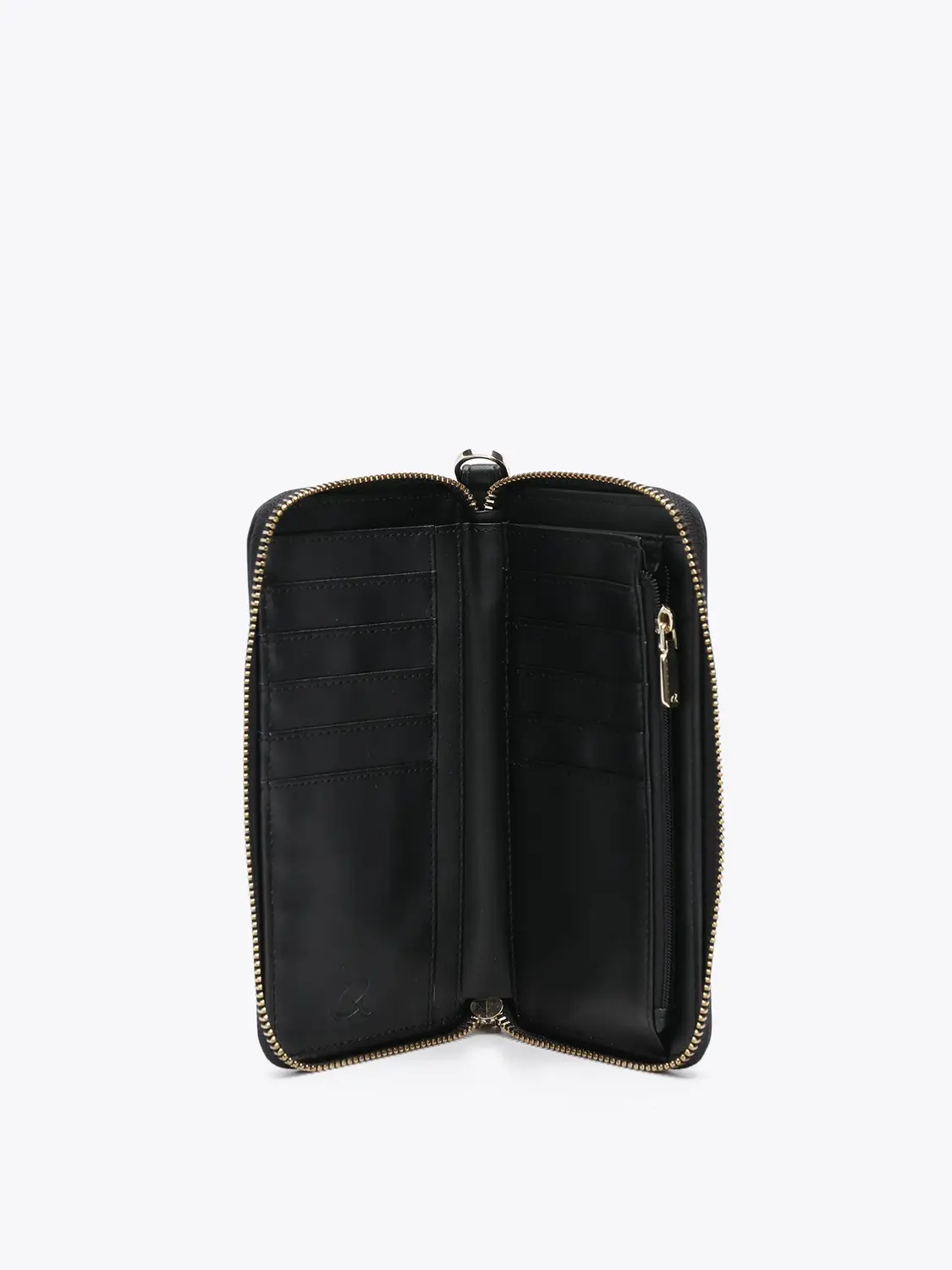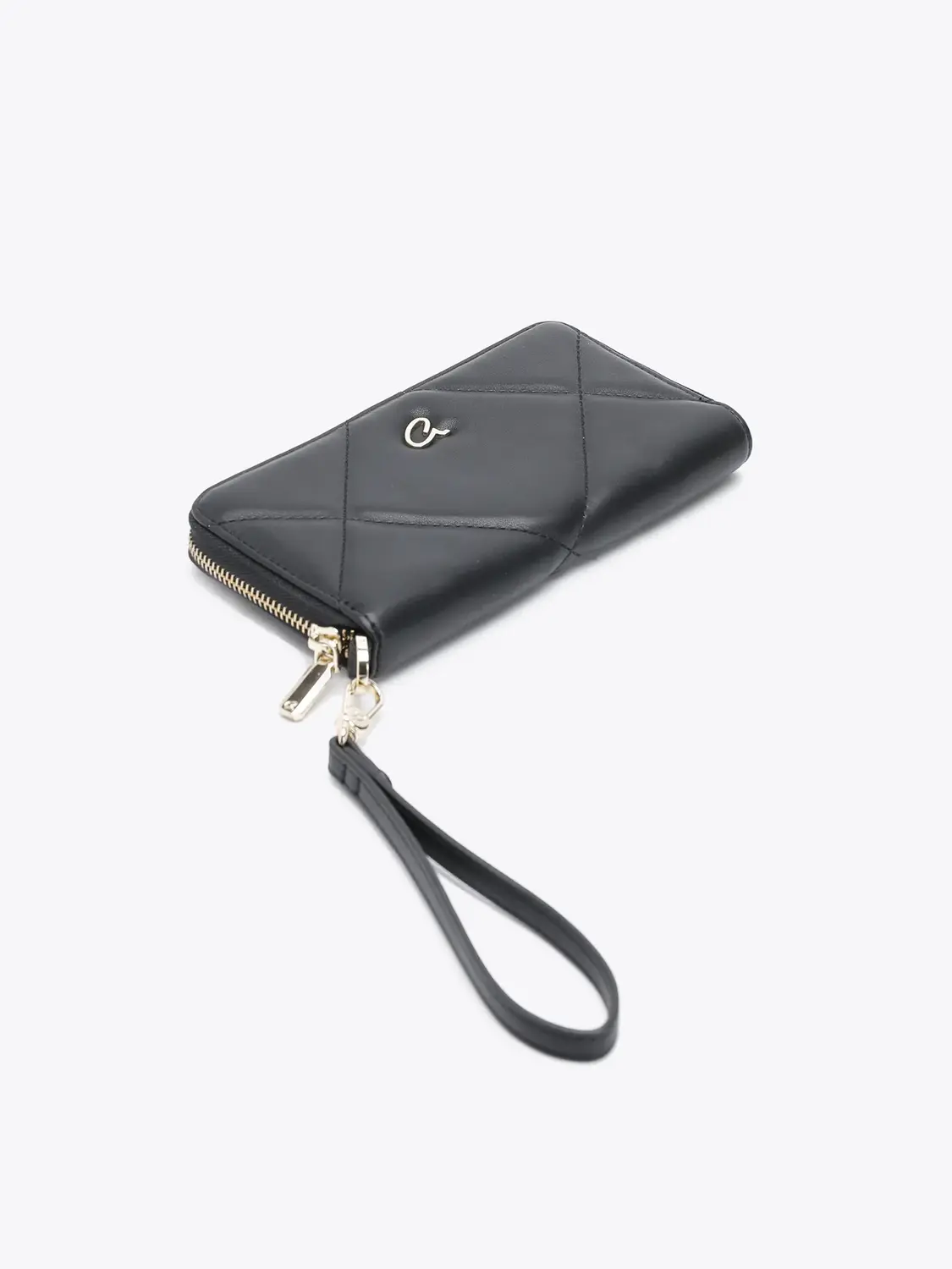 Γυναικείο πορτοφόλι Sissel με ραφές. Είναι κατασκευασμένο από τεχνόδερμα με μαλακή υφή και διαθέτει κλείσιμο με χρυσό μεταλλικό φερμουάρ. Εσωτερικά περιέχει πλαϊνή θέση για χαρτονομίσματα, πολλαπλές θέσεις για κάρτες και θήκη με φερμουάρ. Συνοδεύεται από λουράκι χειρός για ευκολία στο κράτημα.