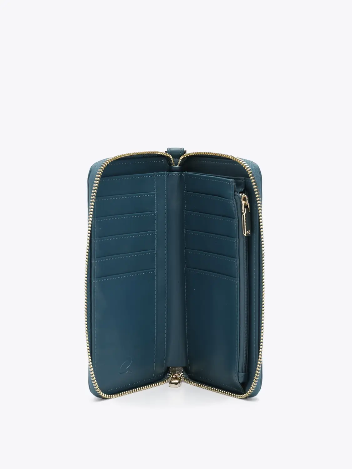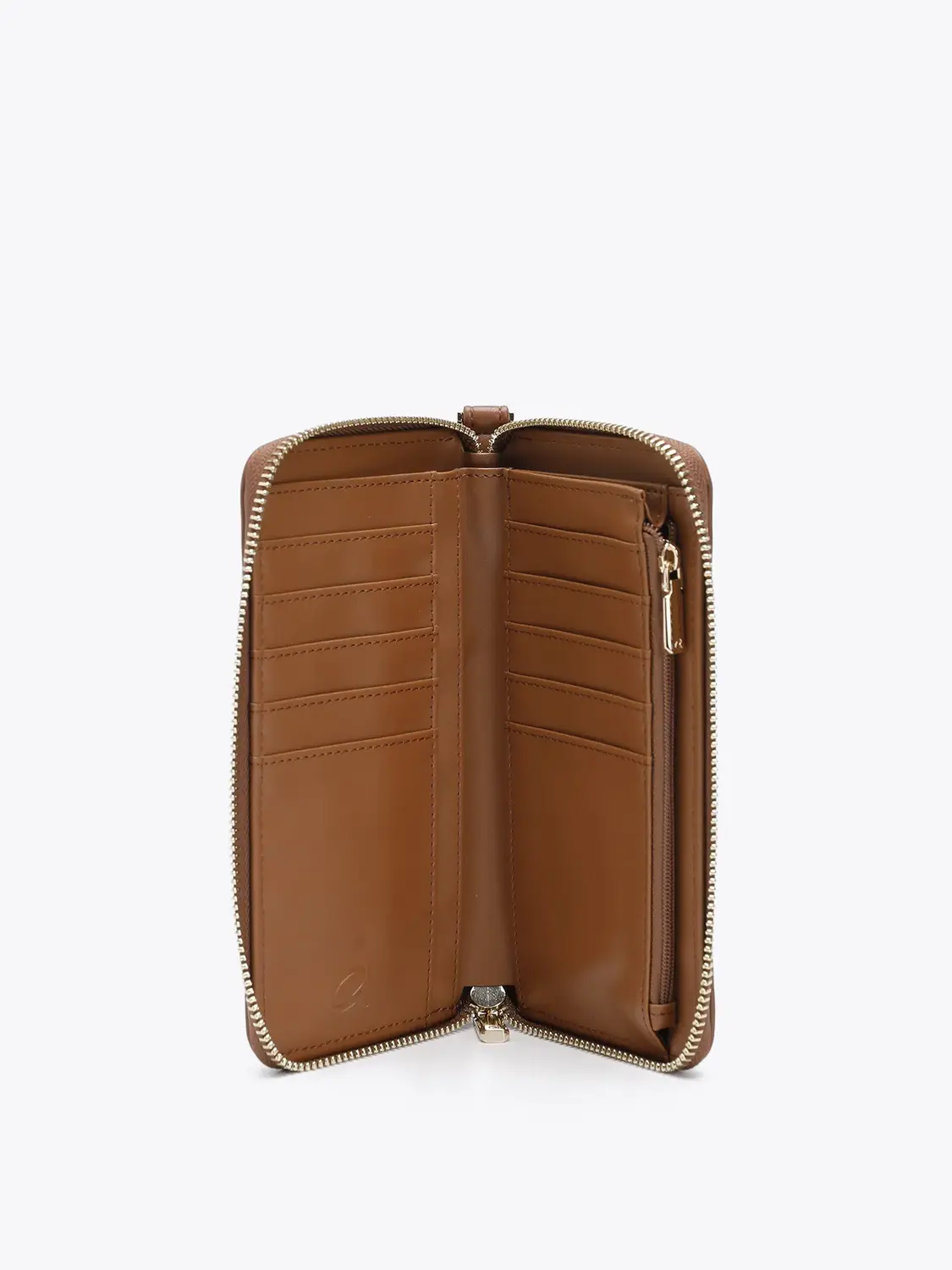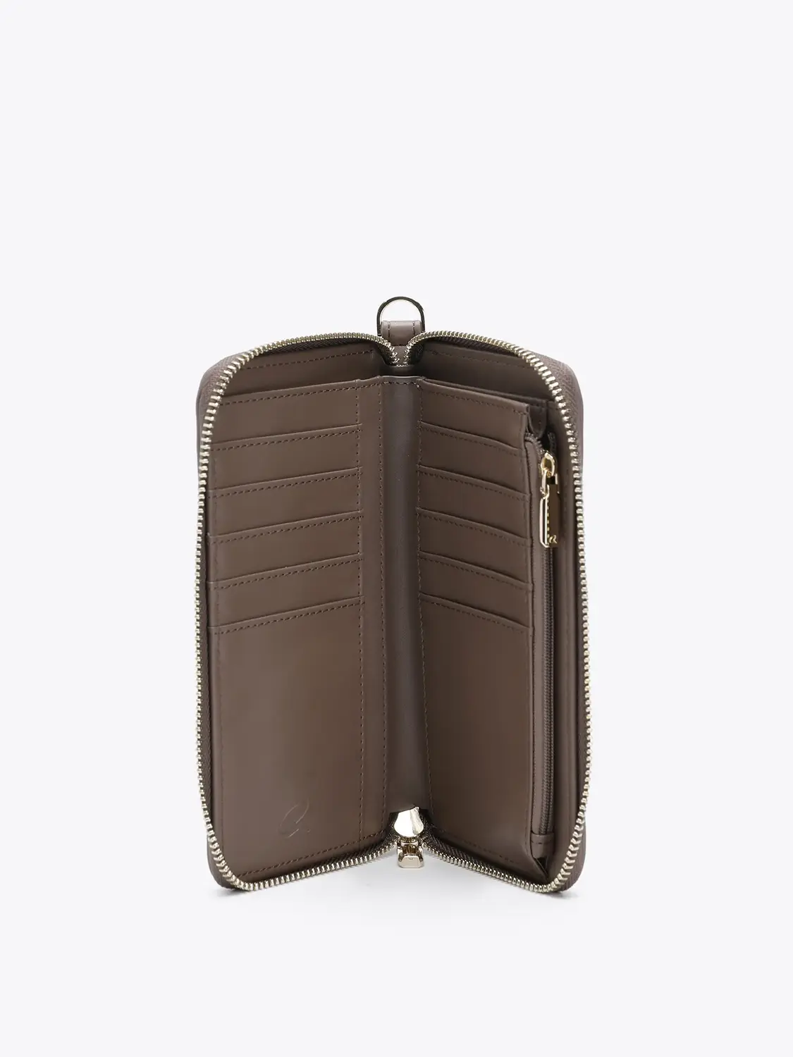 Γυναικείο πορτοφόλι Sissel με ραφές. Είναι κατασκευασμένο από τεχνόδερμα με μαλακή υφή και διαθέτει κλείσιμο με χρυσό μεταλλικό φερμουάρ. Εσωτερικά περιέχει πλαϊνή θέση για χαρτονομίσματα, πολλαπλές θέσεις για κάρτες και θήκη με φερμουάρ. Συνοδεύεται από λουράκι χειρός για ευκολία στο κράτημα.