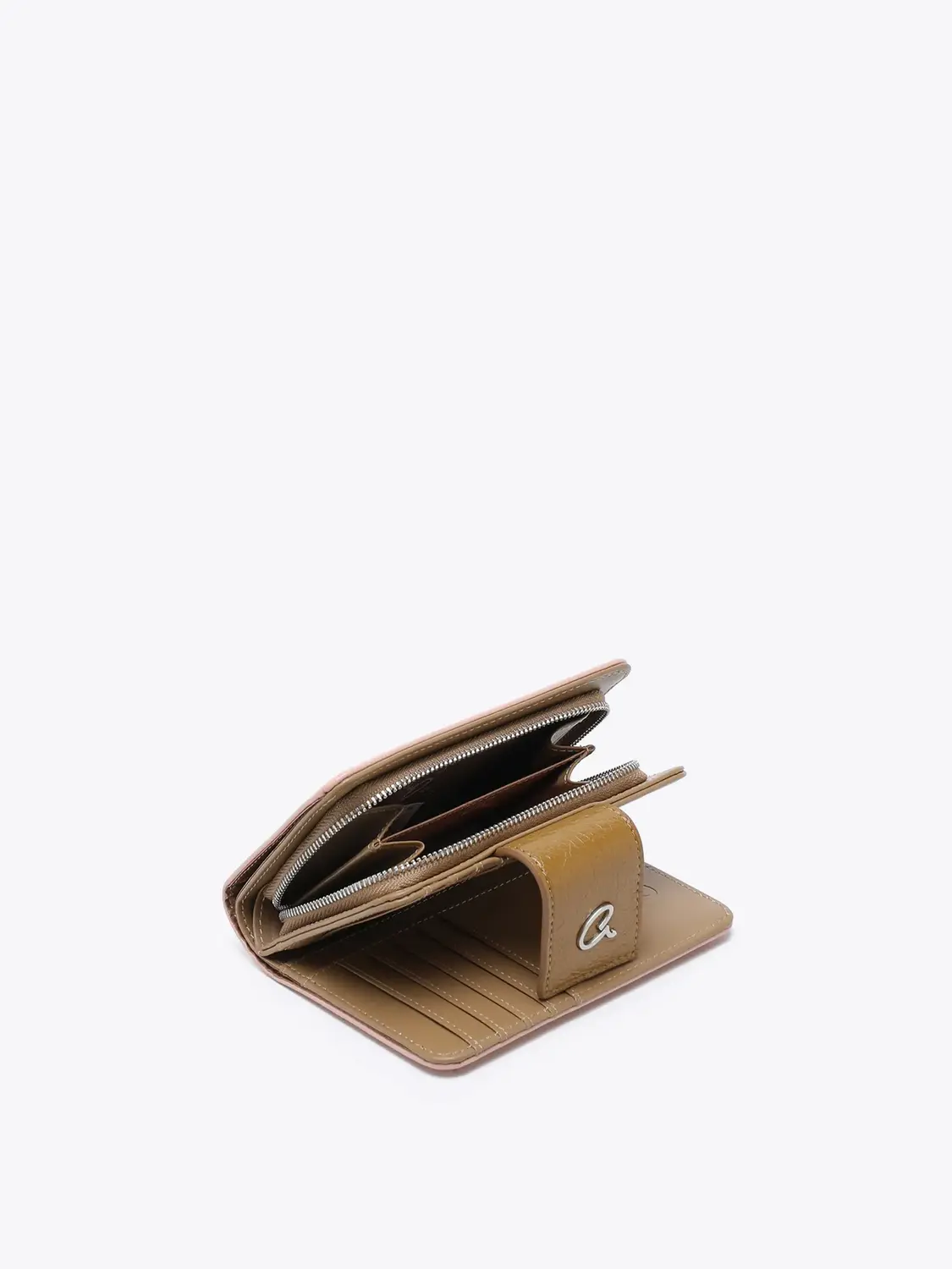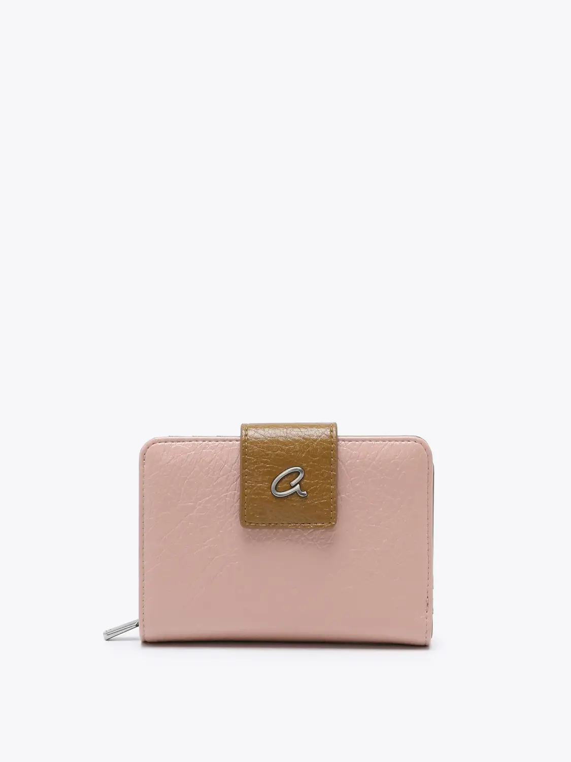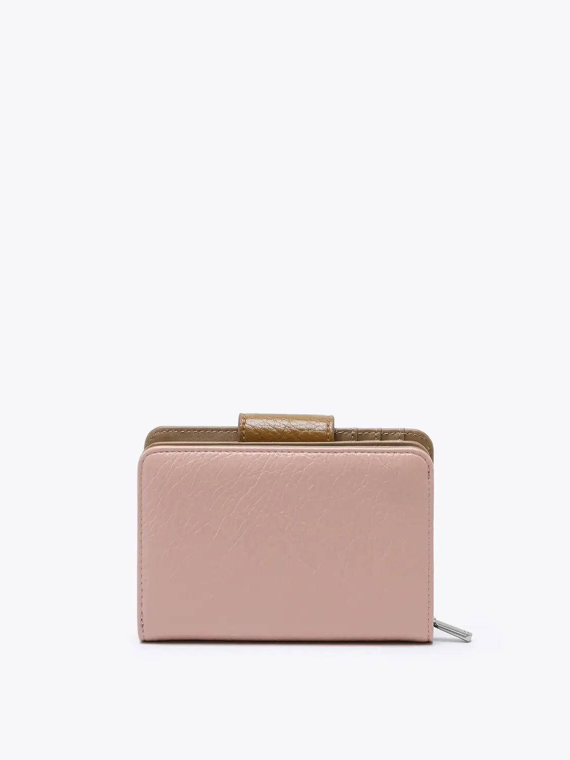 Στυλάτο πορτοφόλι από τεχνόδερμα, με δύο ξεχωριστά τμήματα: ένα με φερμουάρ και ένα με μαγνητικό κούμπωμα. Διαθέτει πολλαπλές θήκες για κάρτες και χαρτονομίσματα. Διακοσμημένο με ματ ασημί μεταλλικές λεπτομέρειες.