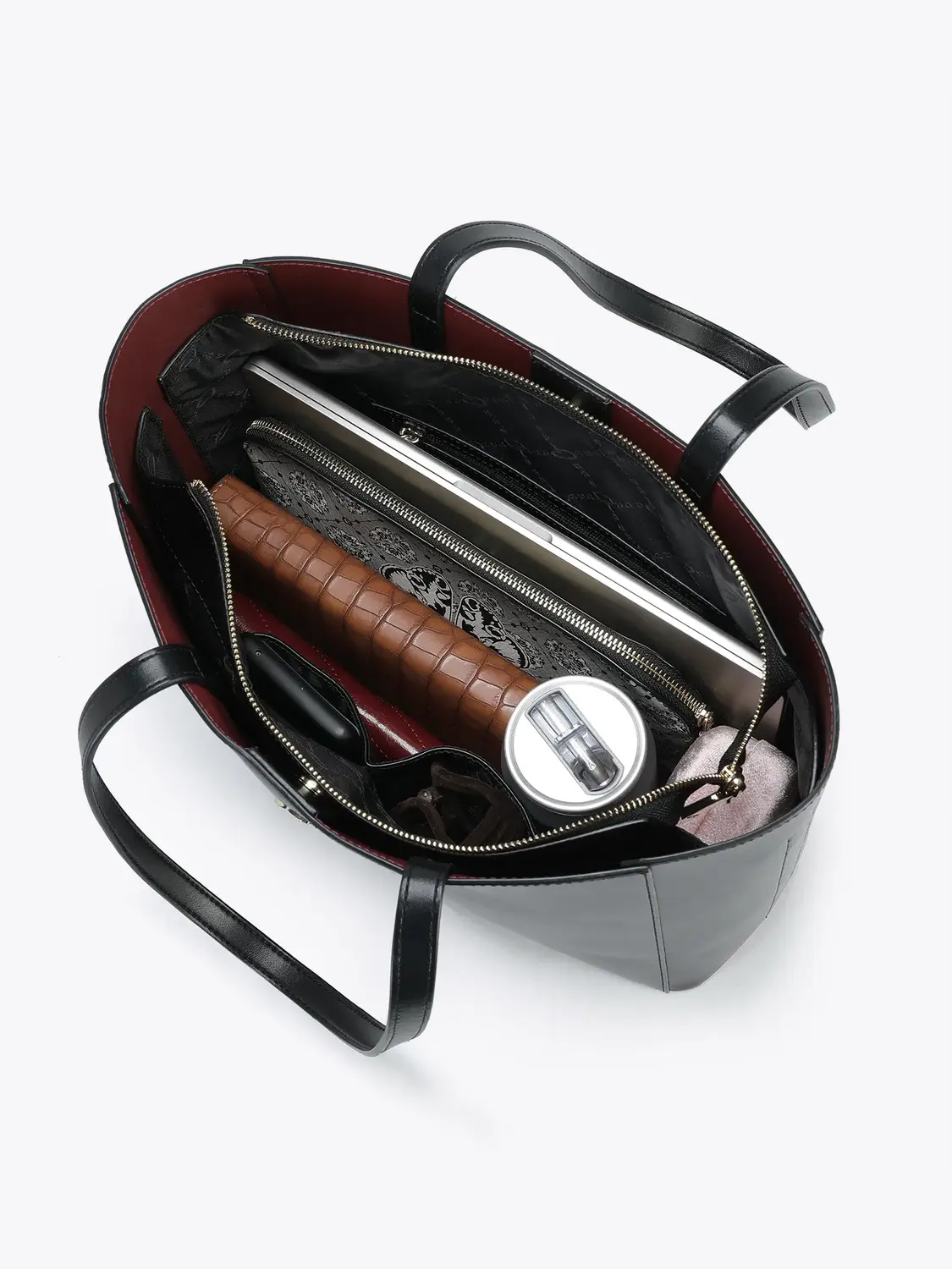 Γυναικεία τσάντα Astri από τεχνόδερμα με διπλά μακρία χερούλια για να φορεθεί στον ώμο. Στο εσωτερικό της διαχωριζέται σε τρία τμήματα με το κεντρικό να διαθέτει φόδρα, μία θήκη με φερμουάρ και δύο ανοιχτές θέσεις για οργάνωση. Τα πλαϊνά τμήματα κλείνουν με μαγνητικό κουμπώμα ενώ, το κεντρικό με φερμουάρ για περισσότερη ασφάλεια. Μία άνετη και ευρύχωρη τσάντα για κάθε μέρα.