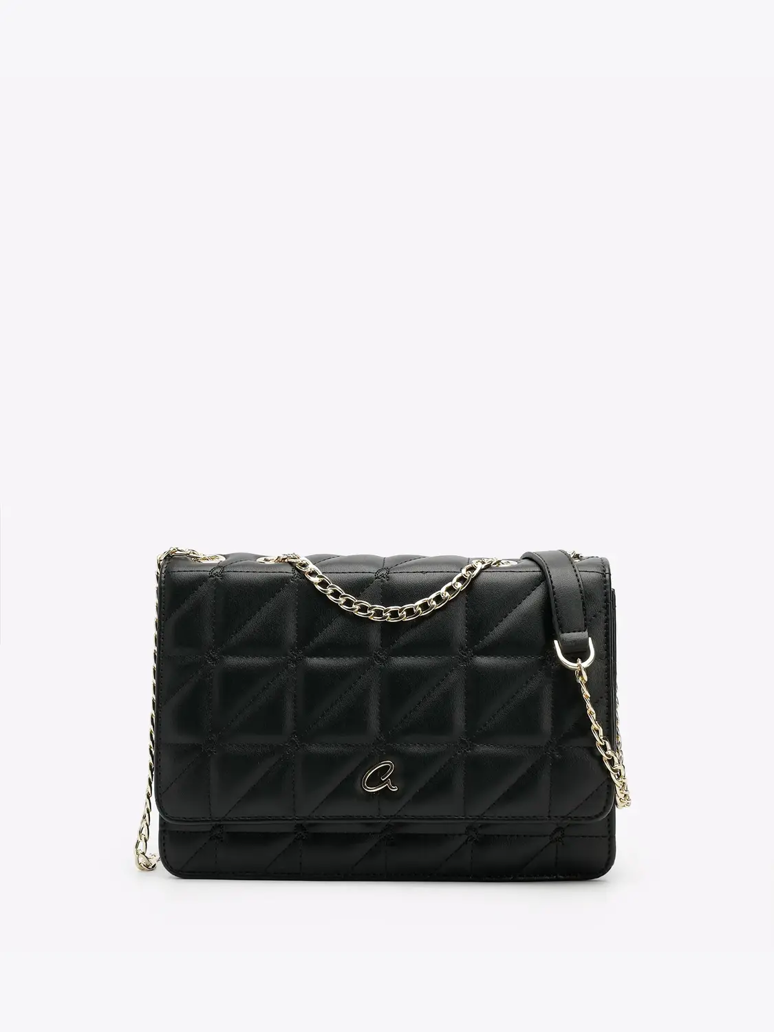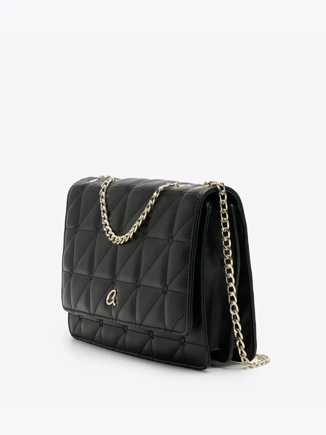 Γυναικεία τσάντα ώμου Garbina από τεχνόδερμα υψηλής ποιότητας με ραφές ‘a’ που της πρσφέρουν καπιτονέ υφή. Ασφαλίζει με μεταλλικό κούμπωμα και καπάκι και διαθέτει διπλή αλυσίδα η οποία μπορεί να προσαρμοστεί για να φορεθεί και ως χιαστί. Στο εσωτερικό είναι επενδυμένη με φόδρα και διαχωρίζεται σε δύο τμήματα που περιλαμβάνουν θήκη και τσέπη με φερμουάρ. Αποτελεί ιδανική επιλογή για κάθε εμφάνιση.