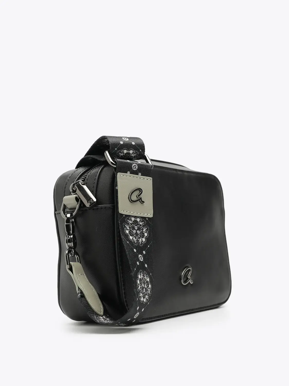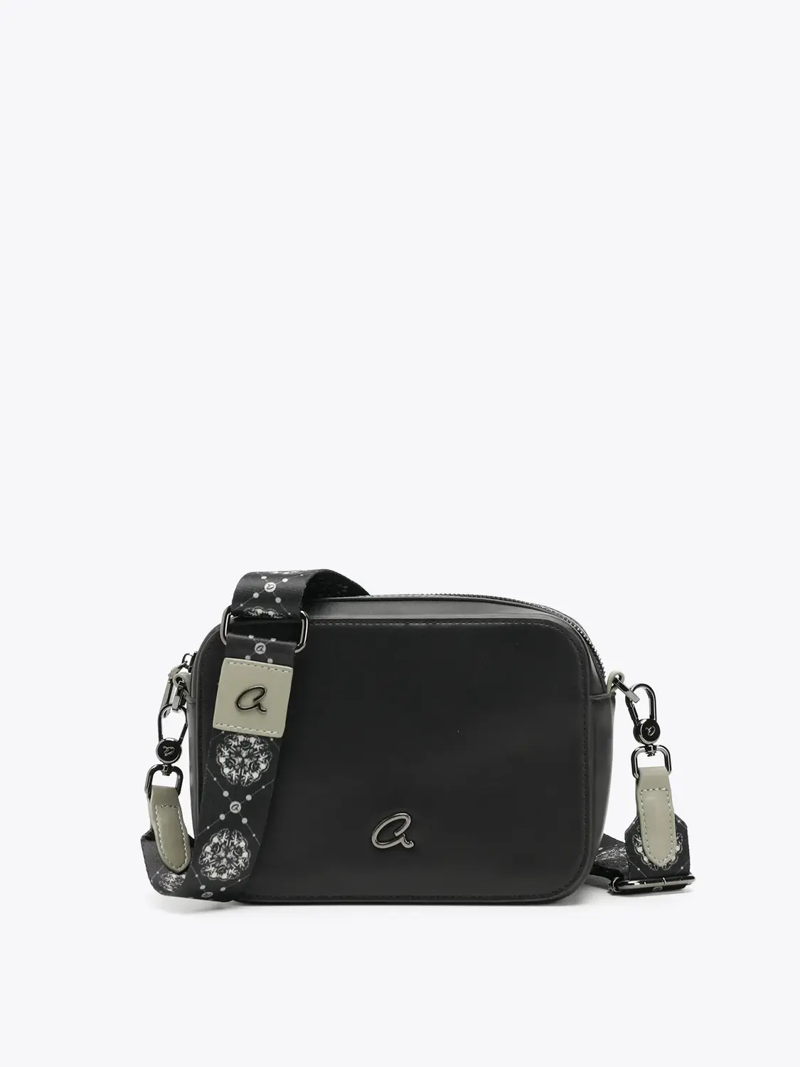 Γυναικείο τσαντάκι χιαστί Malin από τεχνόδερμα με λεία υφή, Εσωτερικά περιέχει μία θήκη με φερμουάρ και μία ανοιχτή για οργάνωση ενώ είναι επενδυμένο με φόδρα. Διαθέτει φαρδύ αποσπώμενο ιμάντα για άνεση στη μετακίνηση, ο οποίος διακοσμείται με τύπωμα πεταλούδα axel και μπορεί να ρυθμιστεί στο κατάλληλο ύψος. Κλείνει με μεταλλικό φερμουάρ. Το σχήμα του βοηθάει στην οργάνωση και το καθιστά ιδανικό για κάθε μέρα.