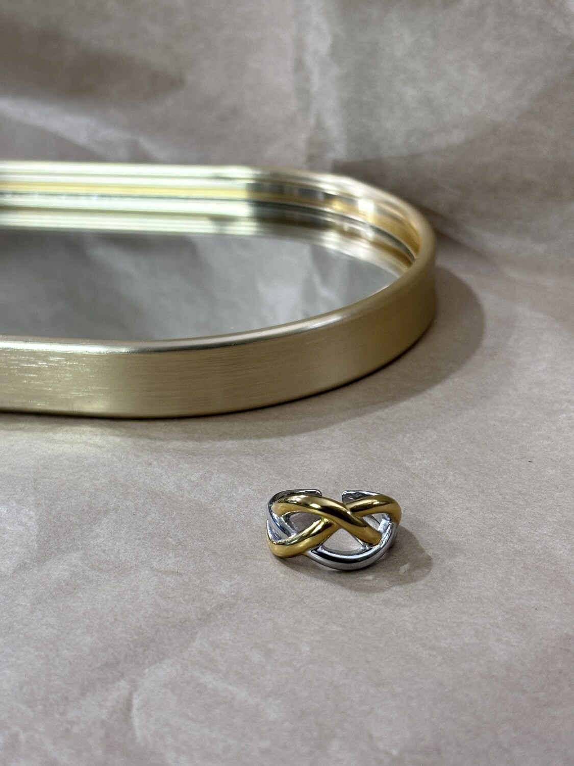 Ατσάλινο δαχτυλίδι με αυξομείωση σε χρώμα χρυσό και ασημί. Δεν μαυρίζει και είναι ανθεκτικό στο νερό.