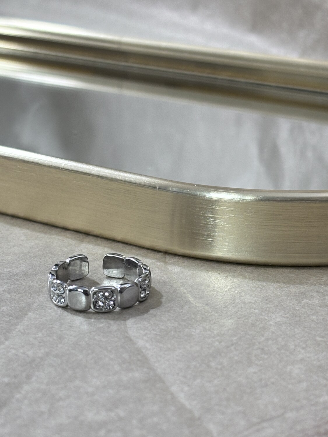 Ατσάλινο δαχτυλίδι με αυξομείωση σε χρώμα ασημί. Δεν μαυρίζουν και είναι ανθεκτικό στο νερό.