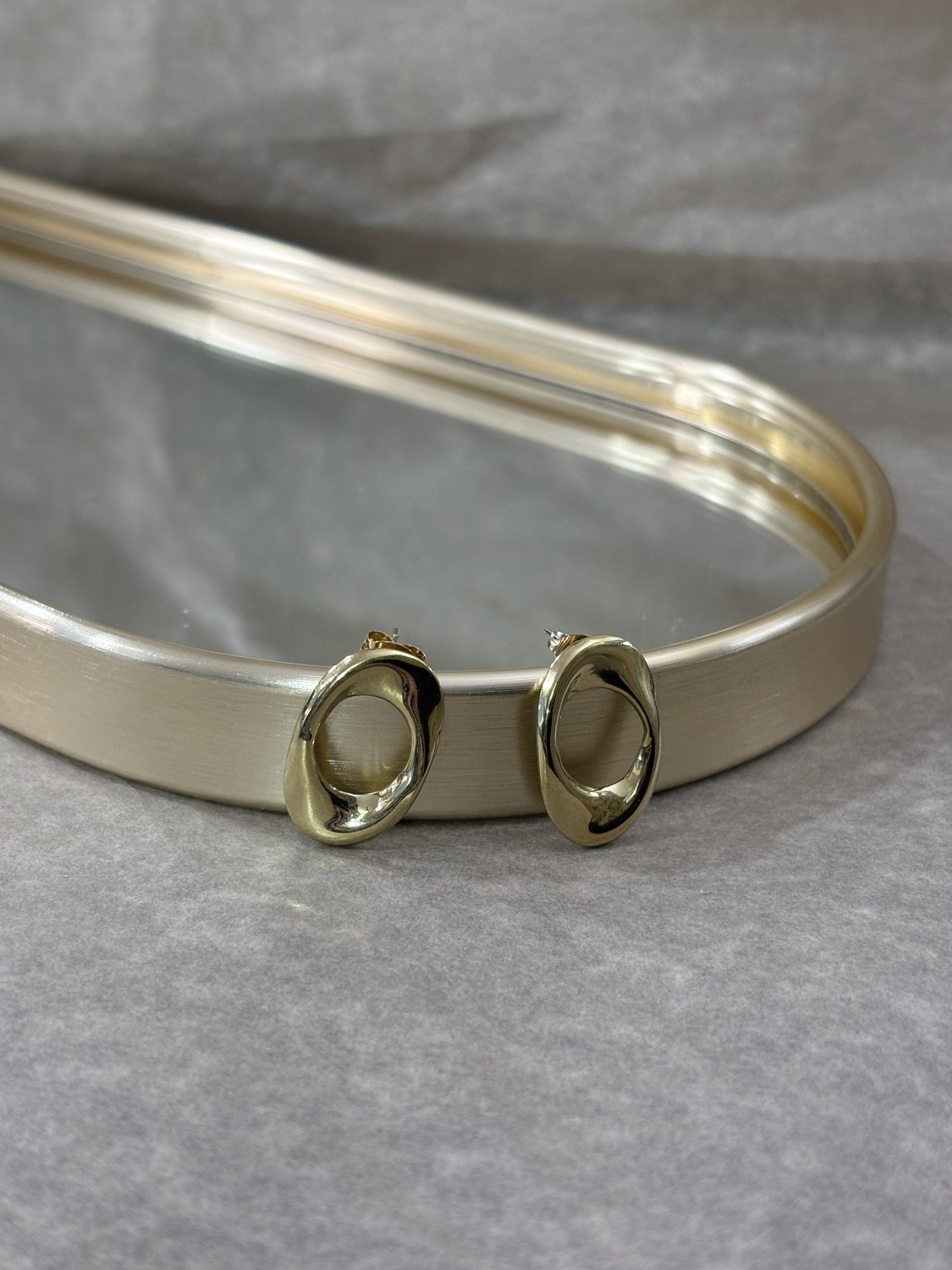 Ατσάλινα σκουλαρίκια σε χρώμα χρυσό. Δεν μαυρίζουν και είναι ανθεκτικά στο νέρο.