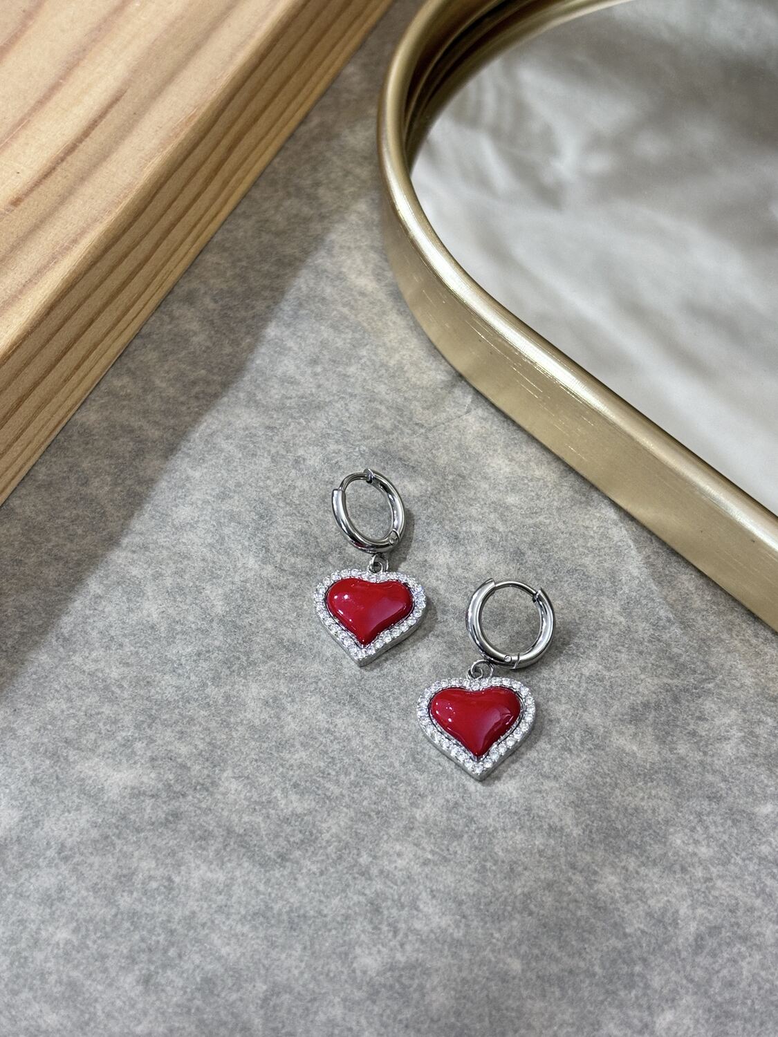 Ατσάλινα σκουλαρίκια κρικάκια με κόκκινη καρδιά σε χρώμα ασημί. Δεν μαυρίζουν και είναι ανθεκτικά στο νέρο.