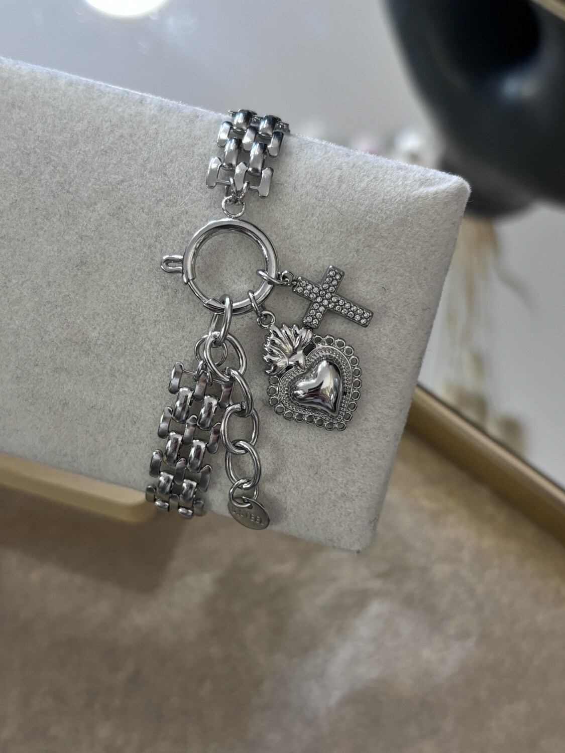 Ατσάλινο βραχιόλι σε χρώμα ασημί. Δεν μαυρίζει και είναι ανθεκτικό στο νερό.